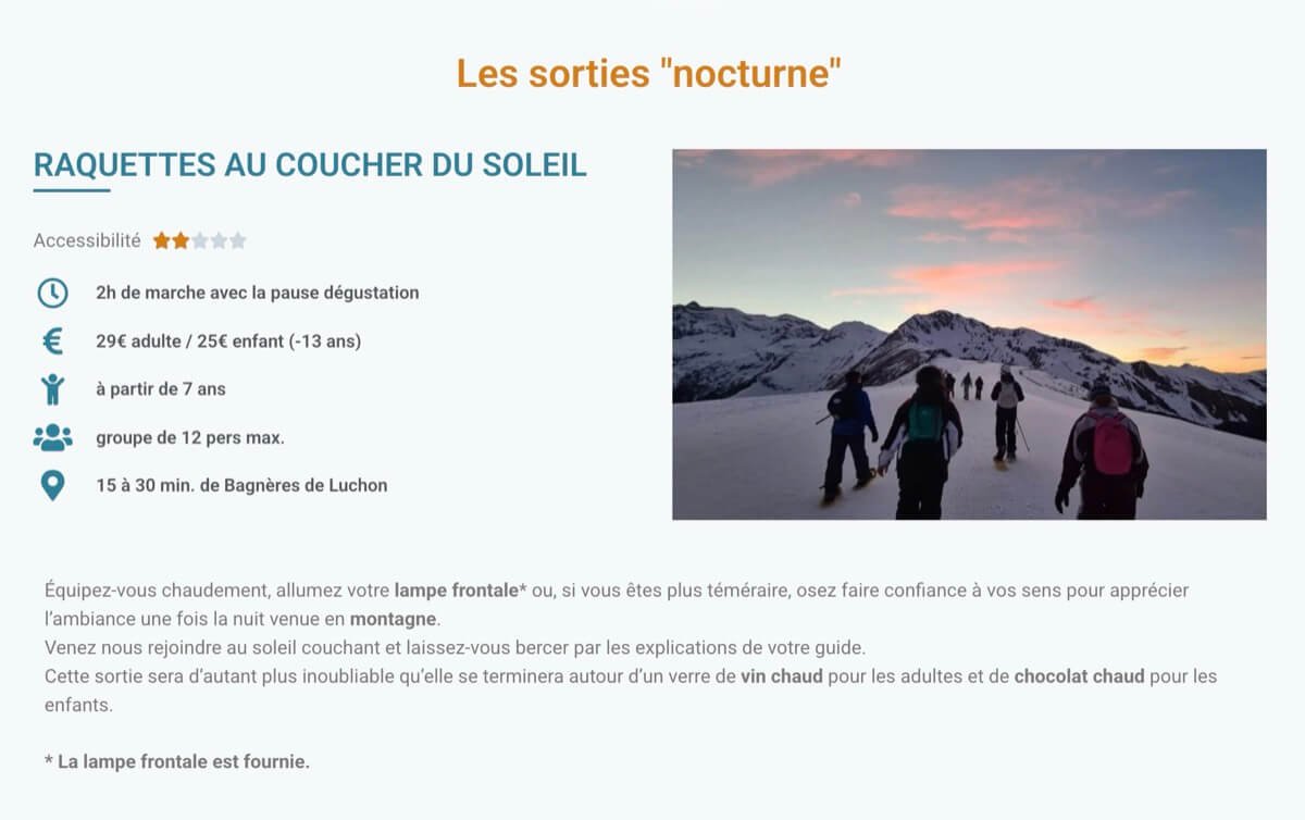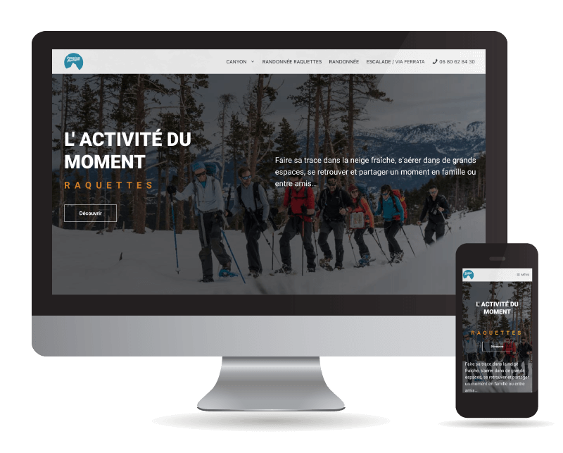 Le site présente une offre complète autour de la raquette à neige, du canyoning, de la marche nordique, de la randonnée, de l’escalade, ainsi que des séjours et hébergements associés.