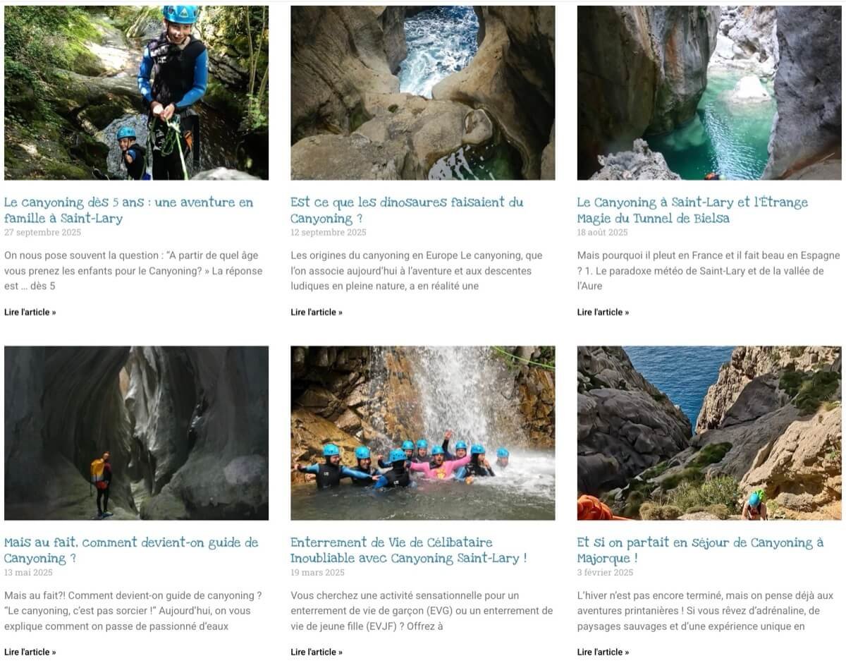 Résultat : le site est très bien positionné sur les moteurs de recherche (notamment sur les requêtes locales “canyoning Saint-Lary”, “canyoning Pyrénées”, “sortie canyoning Hautes-Pyrénées”…), et génère un trafic organique important et régulier.