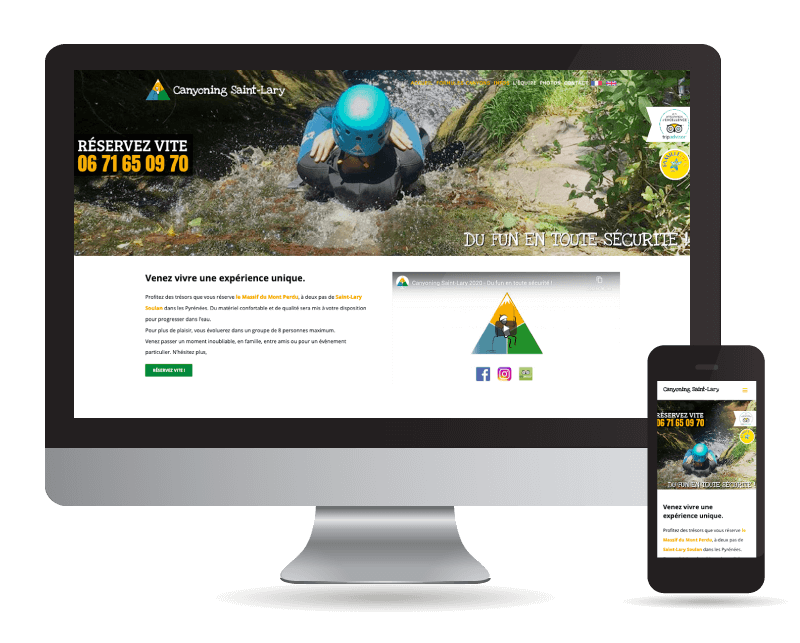 Canyoning Saint-Lary est un site vitrine WordPress conçu pour une entreprise spécialisée dans les activités outdoor et les sports d’eaux vives dans les Pyrénées.