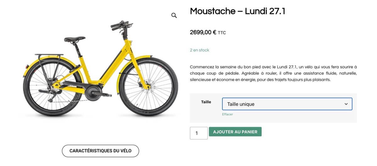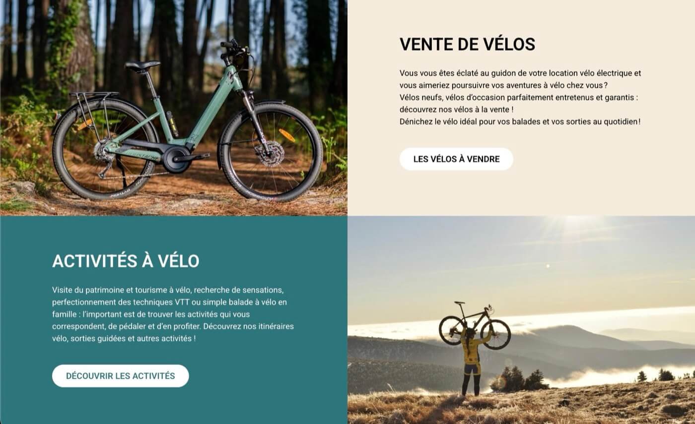 Le site présente la gamme complète de vélos sous forme d’un affichage inspiré du e-commerce, mais sans vente en ligne — chaque produit est présenté de manière claire et détaillée, avec un design épuré et moderne.